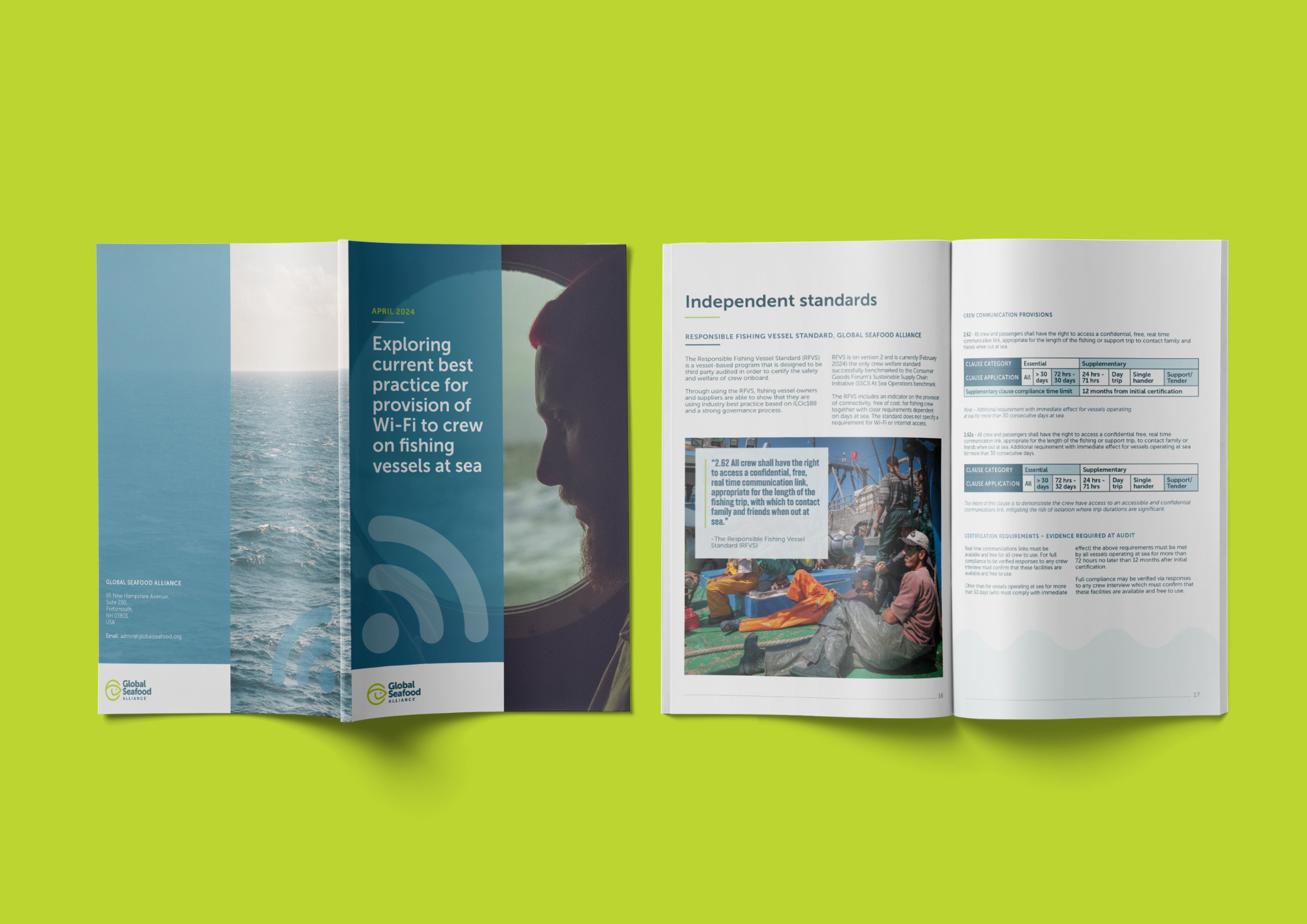 Designed multiple reports for the Global Seafood Alliance which reflected critical research into the welfare conditions for seafarers. Following GSA’s existing strong visual identity the reports each led from the development of a mood board. Whilst full of rich copy the reports also featured strong imagery, pie charts and graphs to visually display important research findings.